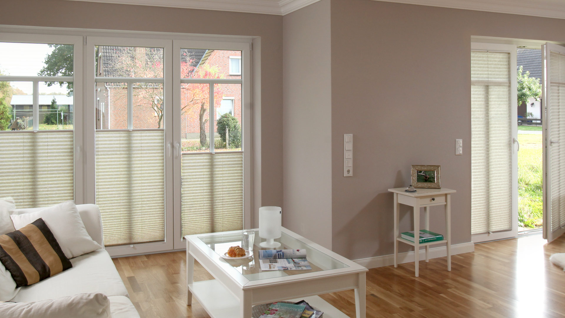 Bari plissegardin er en 25% lystett solskjerming fra NorDan