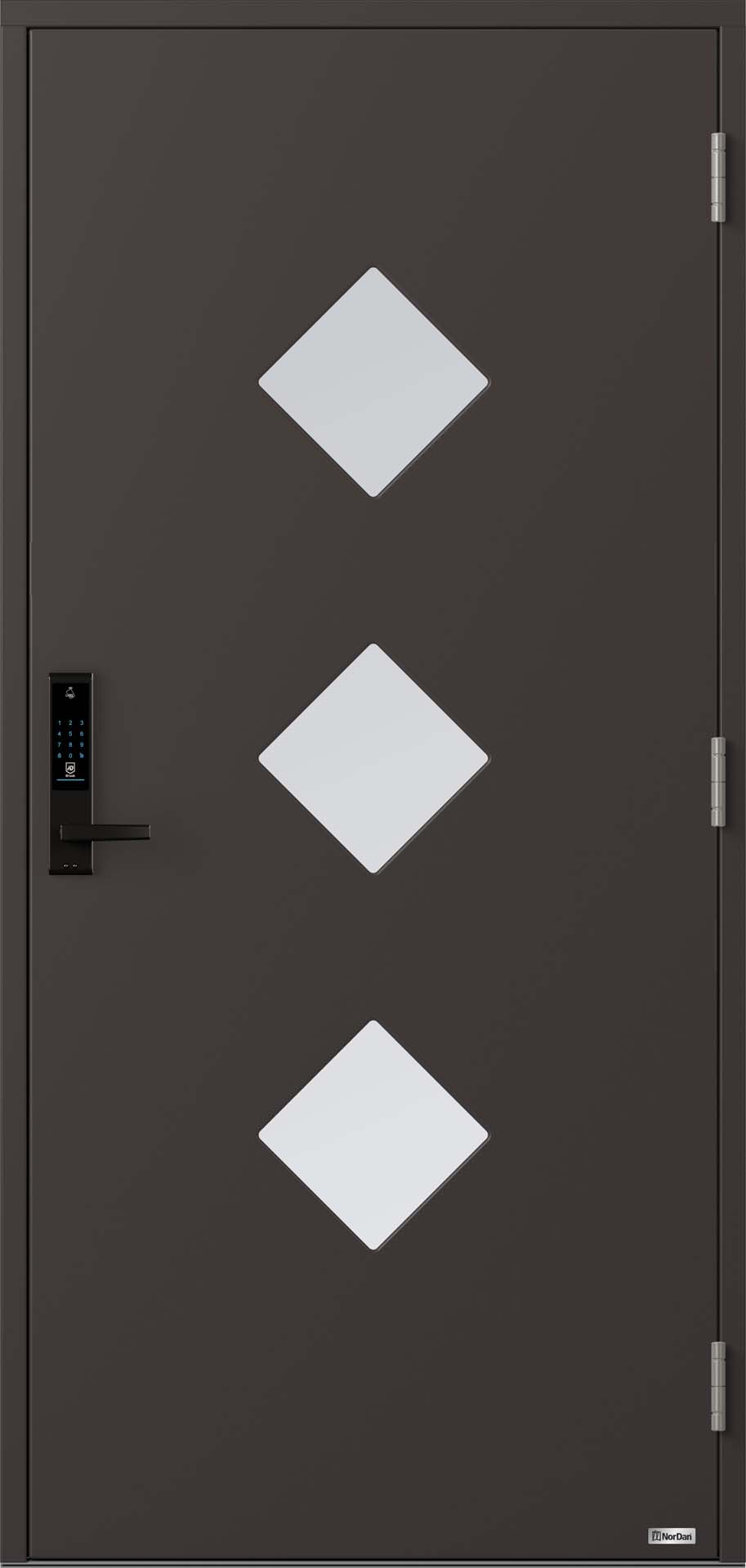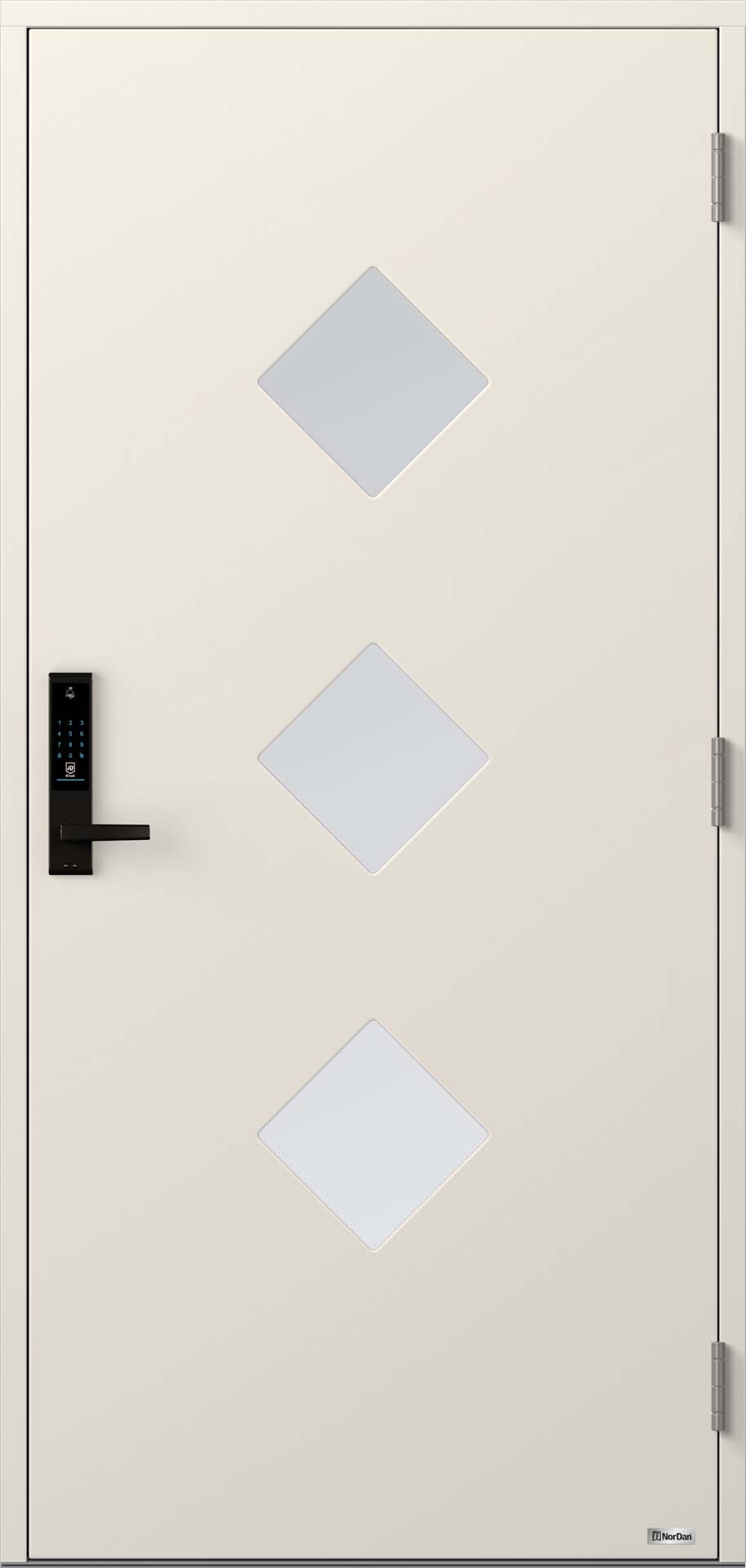 Alle NorDan ytterdører (unntatt Hel Aluminium og 2-fløyet) leveres som standard med ID Lock 202 Multi ferdig montert fra fabrikk. Denne robuste og brukervennlige elektroniske dørlåsen gir deg full kontroll over ytterdøren din. Les mer
