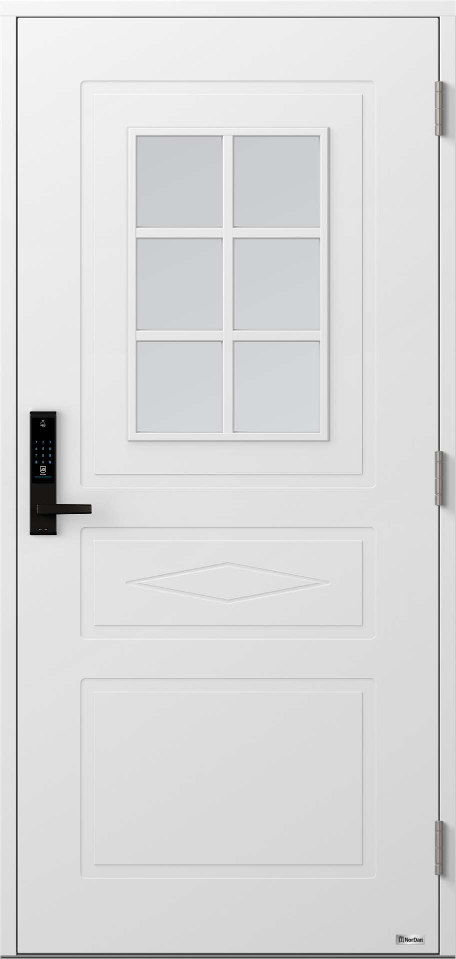 Alle NorDan ytterdører (unntatt Hel Aluminium og 2-fløyet) leveres som standard med ID Lock 202 Multi ferdig montert fra fabrikk. Denne robuste og brukervennlige elektroniske dørlåsen gir deg full kontroll over ytterdøren din. Les mer